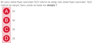 7. Sınıf Matematik Yüzde Problemleri Testleri Çöz Online
