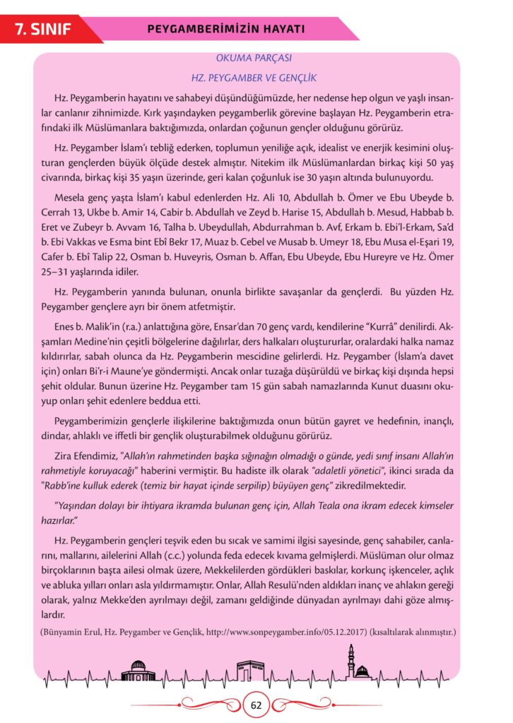 7. Sınıf Peygamberimizin Hayatı Meb Yayınları Sayfa 62 Cevapları / Cevabı