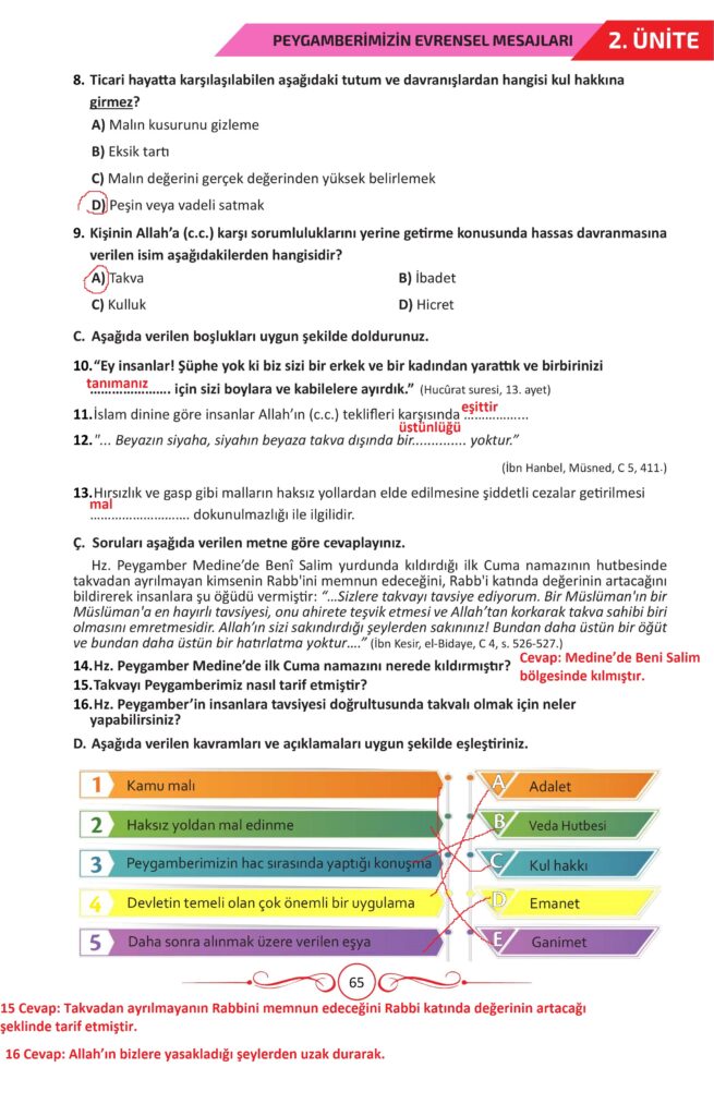 7. sınıf peygamberimizin hayatı ders kitabı meb yayınları sayfa 65 cevap anahtarı 2025-2026 sayfa olarak çözümlerini yanıtları sizler için aşağıda sunduk. 2025-2026 meb yayınları peygamberimizin hayatı ders kitabı cevapları yine sitemizde olacak.