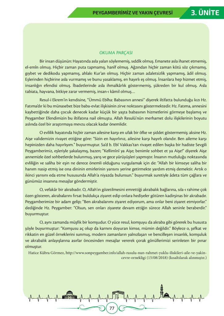 7. Sınıf Peygamberimizin Hayatı Meb Yayınları Sayfa 77 Cevapları / Cevabı