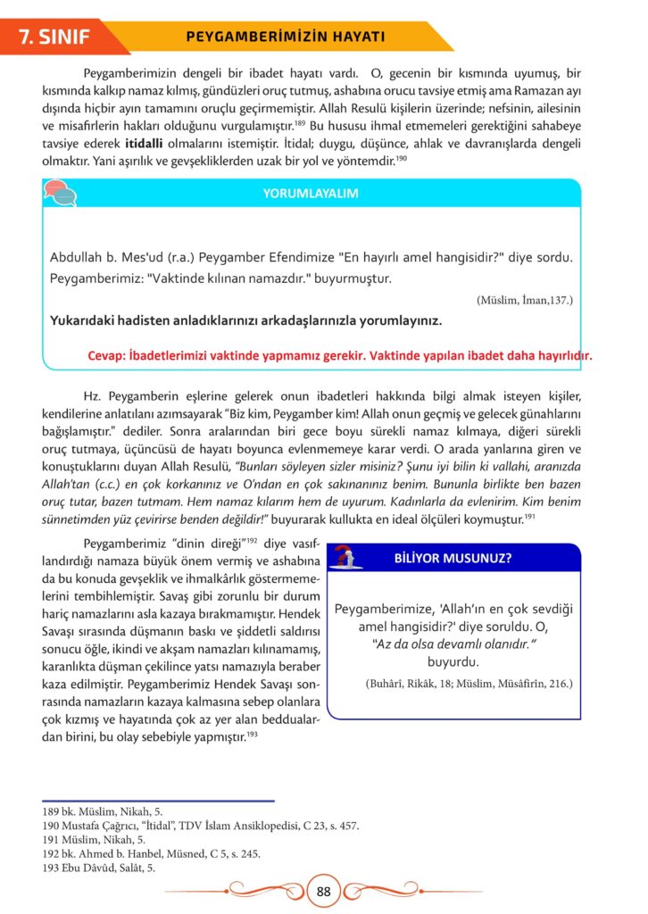 7. Sınıf Peygamberimizin Hayatı Meb Yayınları Sayfa 88 Cevapları / Cevabı