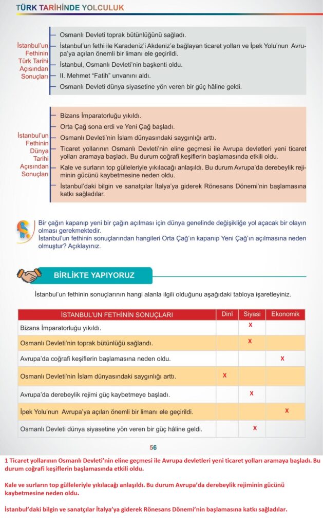 7. Sınıf Sosyal Bilgiler Meb Yayınları Sayfa 56 Cevapları / Cevabı