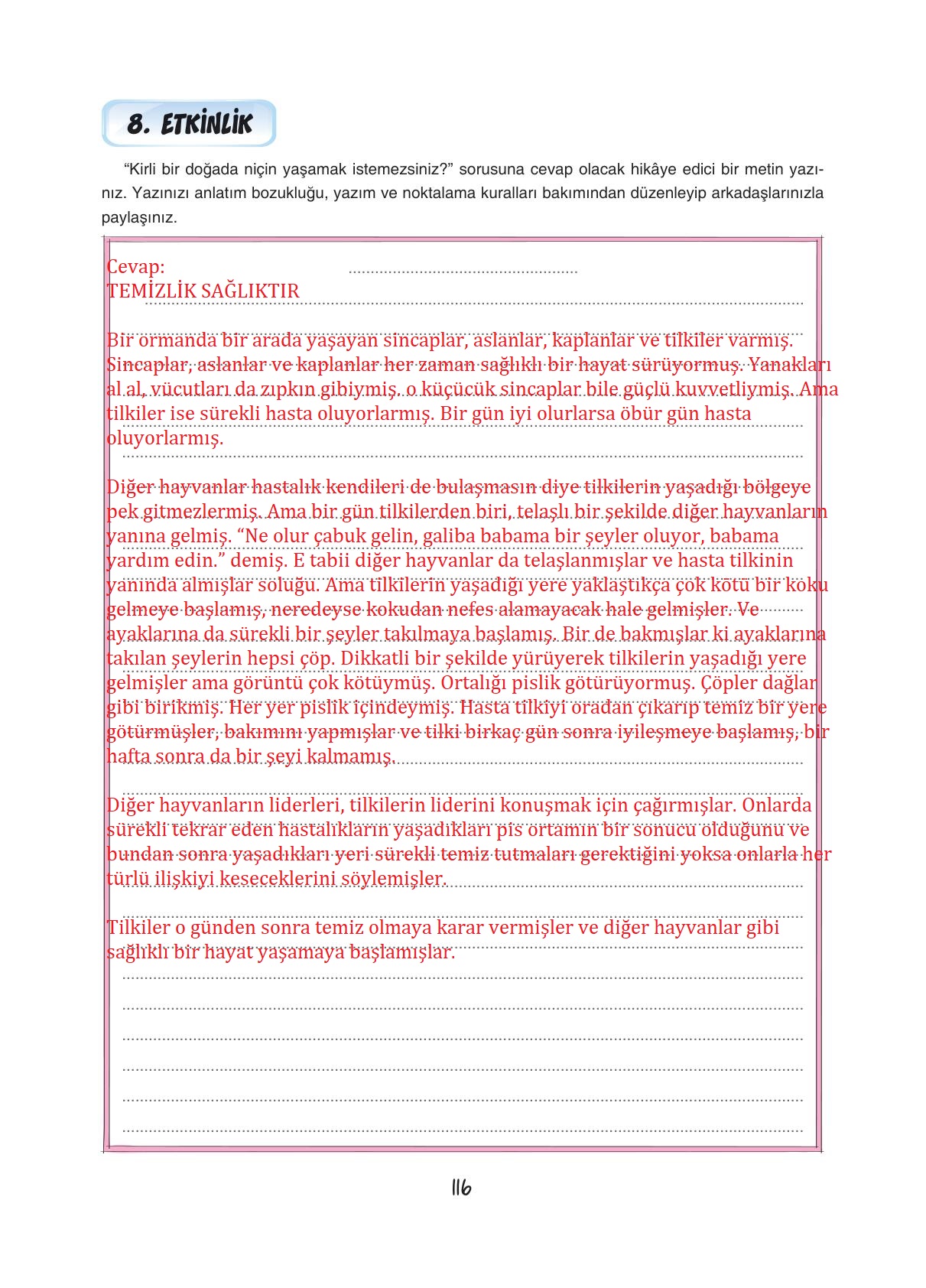 7. Sınıf Türkçe Ders Kitabı Dörtel Yayıncılık Sayfa 116 Cevapları