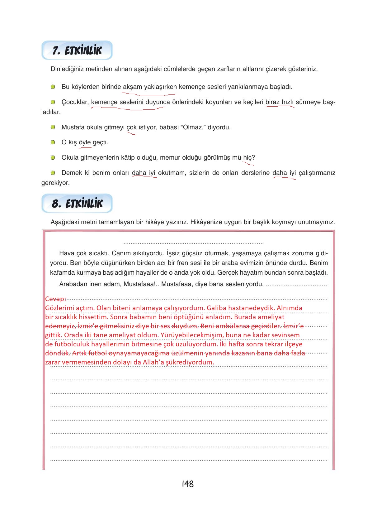 7.sınıf türkçe ders kitabı dörtel yayınları sayfa 148 cevap anahtarı cevabı sayfa olarak çözümlerini yanıtları sizler için sunduk. Tüm ders kitabı cevapları gelecek yıl yine sitemizde olacak.
