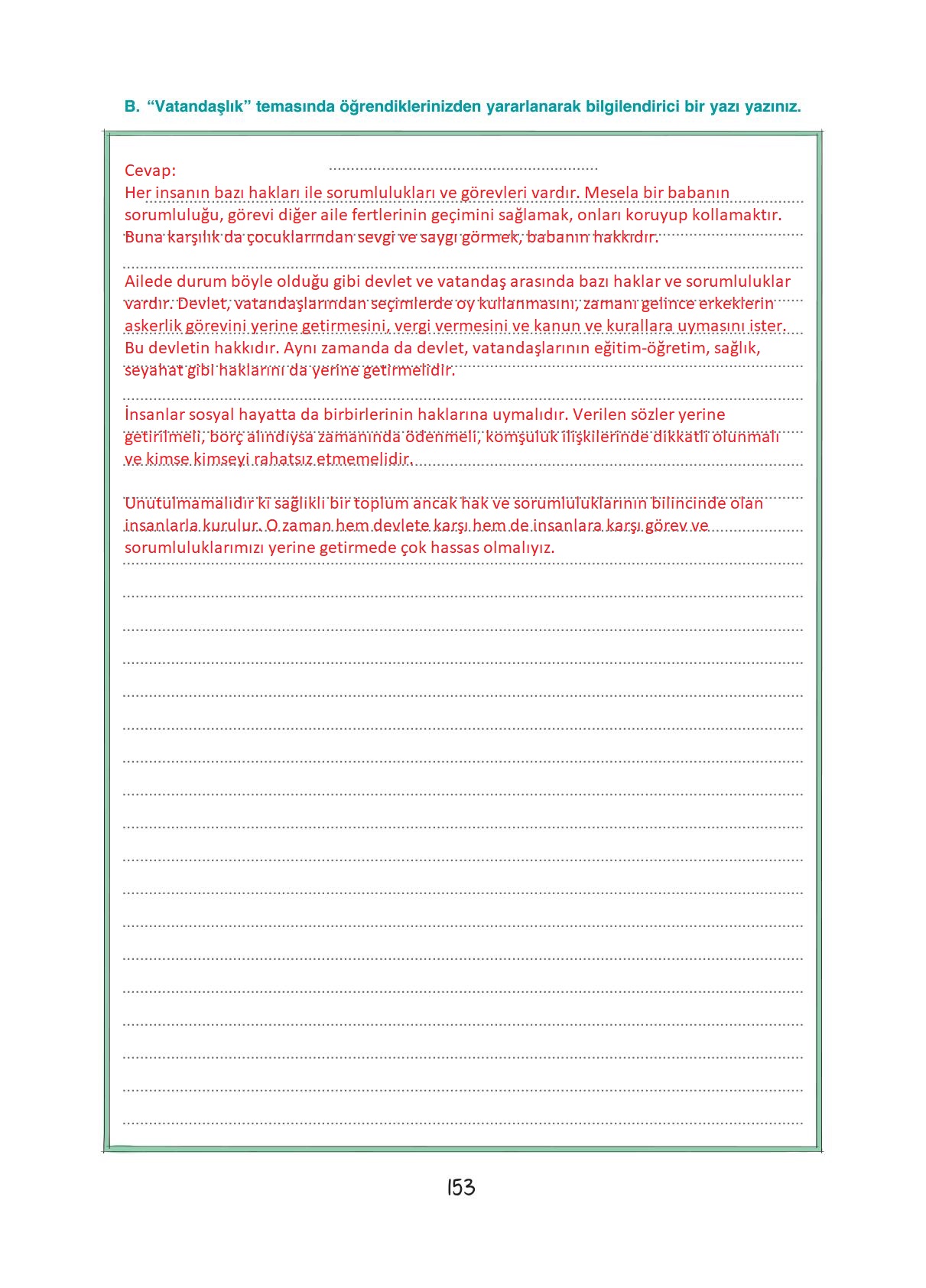 7.sınıf türkçe ders kitabı dörtel yayınları sayfa 153 cevap anahtarı cevabı sayfa olarak çözümlerini yanıtları sizler için sunduk. Tüm ders kitabı cevapları gelecek yıl yine sitemizde olacak.