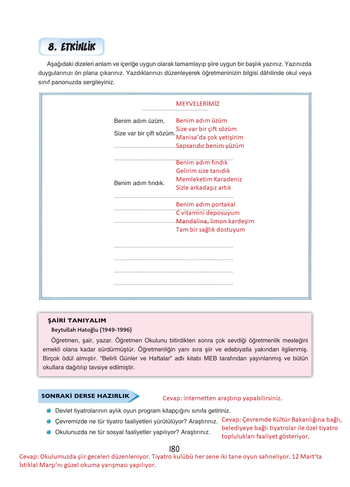 7. Sınıf Türkçe Ders Kitabı Dörtel Yayıncılık Sayfa 180 Cevapları