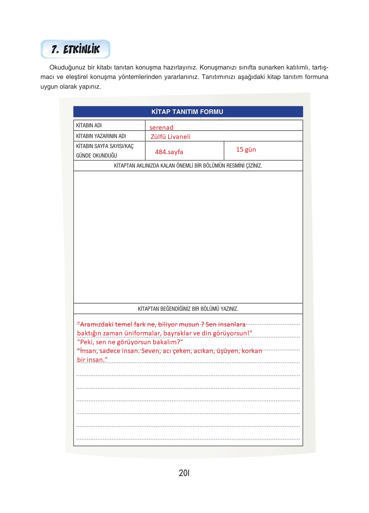 7. Sınıf Türkçe Ders Kitabı Dörtel Yayıncılık Sayfa 201 Cevapları
