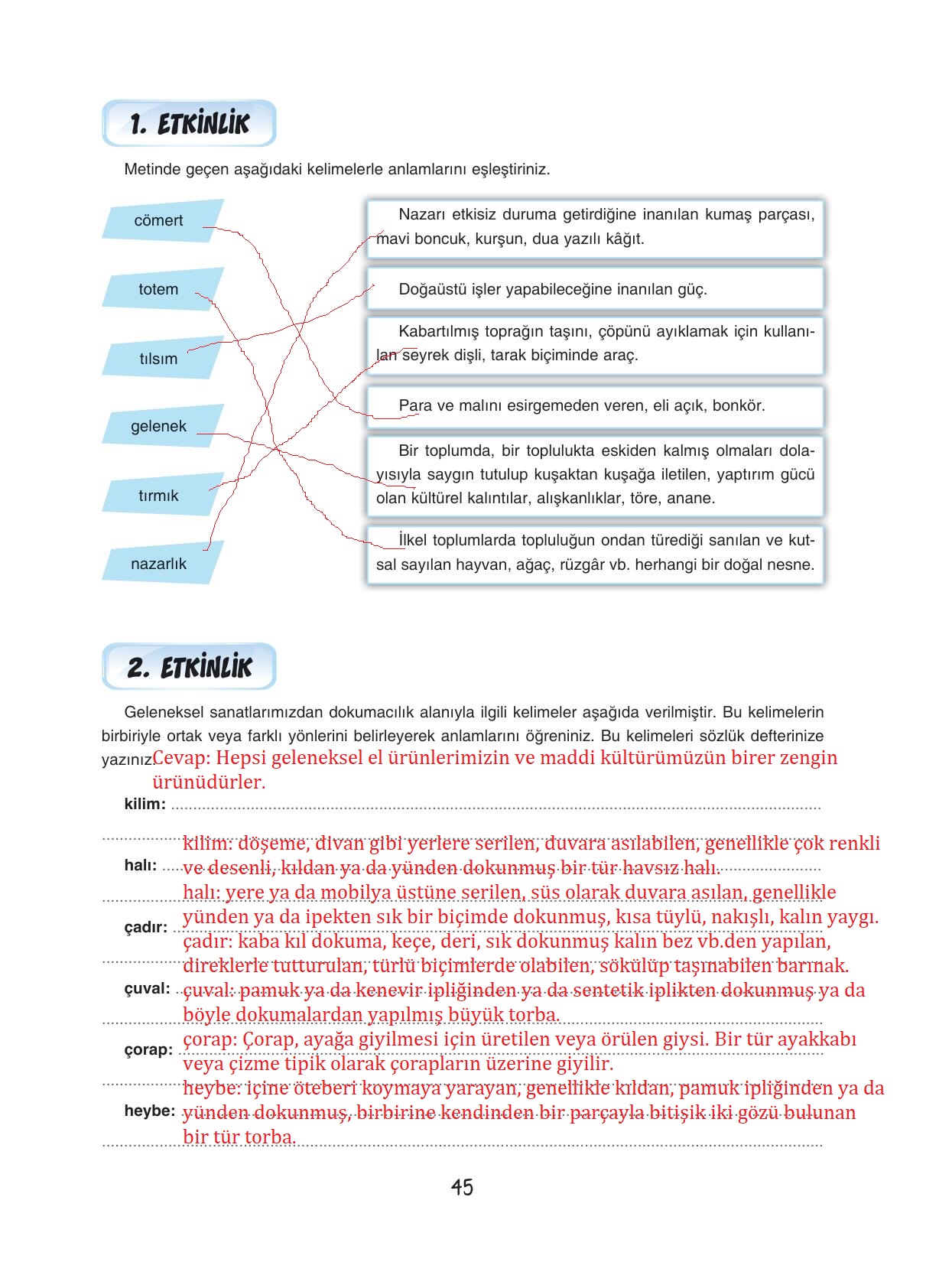 7.sınıf türkçe ders kitabı dörtel yayınları sayfa 45 cevap anahtarı cevabı sayfa olarak çözümlerini yanıtları sizler için sunduk. Tüm ders kitabı cevapları gelecek yıl yine sitemizde olacak.