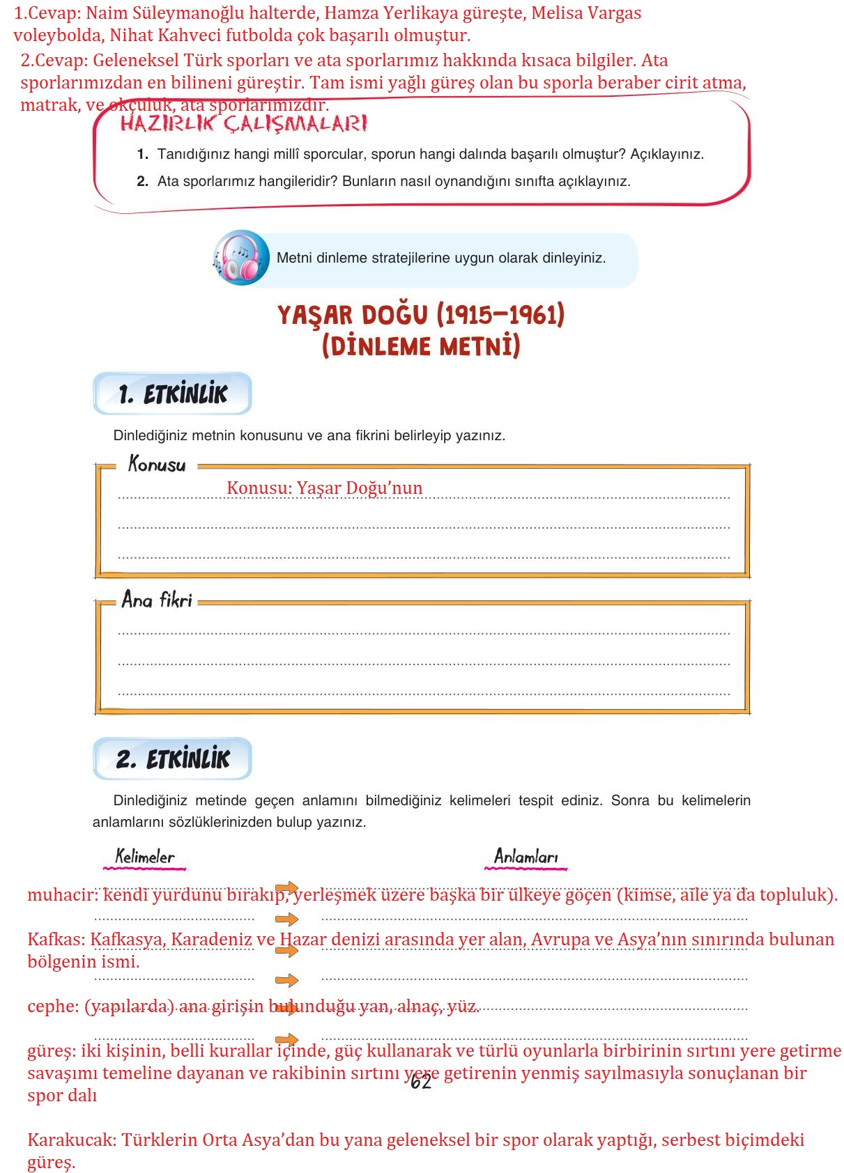 7.sınıf türkçe ders kitabı dörtel yayınları sayfa 62 cevap anahtarı cevabı sayfa olarak çözümlerini yanıtları sizler için sunduk. Tüm ders kitabı cevapları gelecek yıl yine sitemizde olacak.