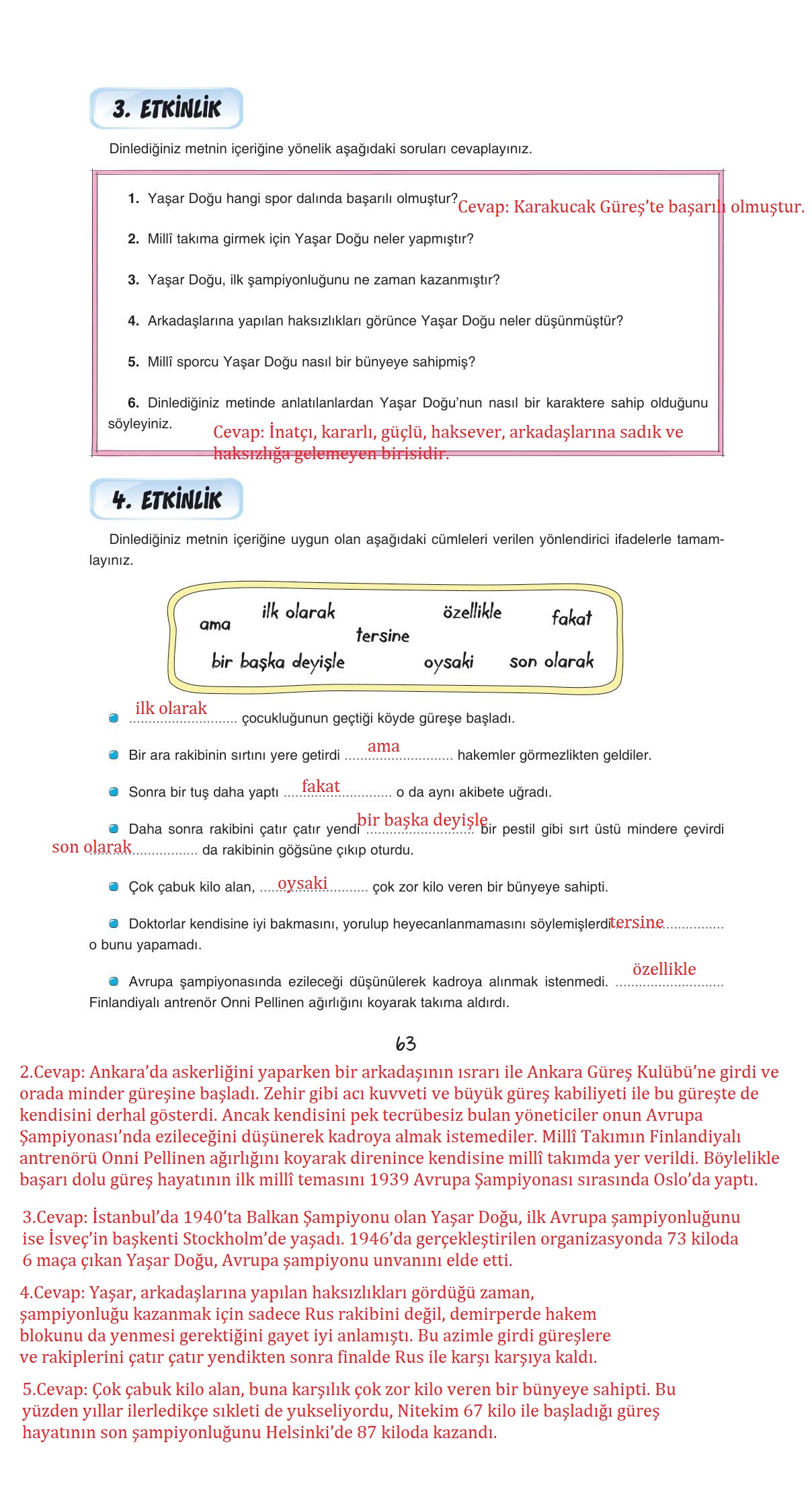 7.sınıf türkçe ders kitabı dörtel yayınları sayfa 63 cevap anahtarı cevabı sayfa olarak çözümlerini yanıtları sizler için sunduk. Tüm ders kitabı cevapları gelecek yıl yine sitemizde olacak.