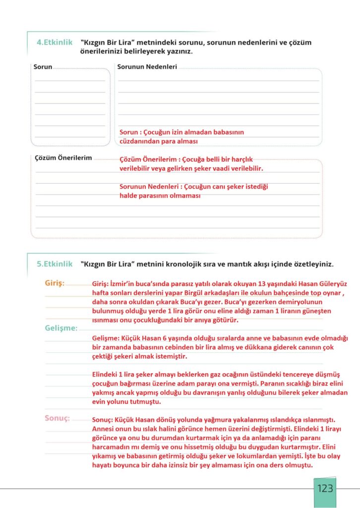 7. Sınıf Türkçe Meb Yayınları Sayfa 123 Cevapları / Cevabı
