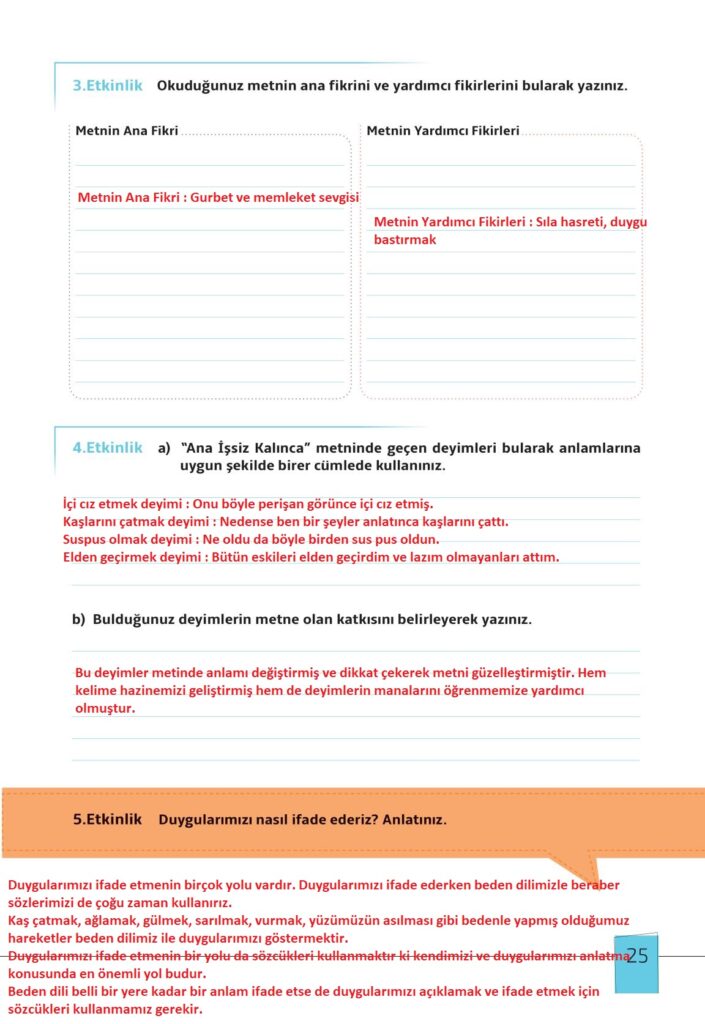 7. Sınıf Türkçe Meb Yayınları Sayfa 25 Cevapları / Cevabı