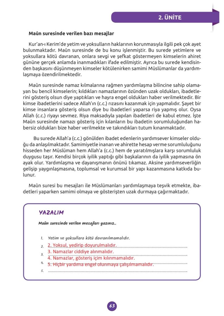 5. Sınıf Din Meb Yayınları Sayfa 63 Cevapları