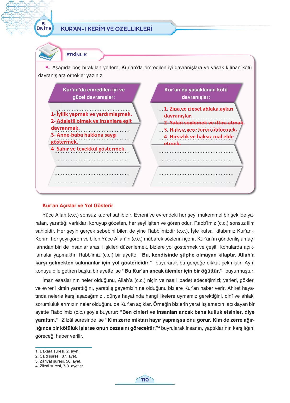 8. Sınıf Din Kültürü ve Ahlak Bilgisi Ders Kitabı Anka Yayınları Sayfa 110 Cevapları