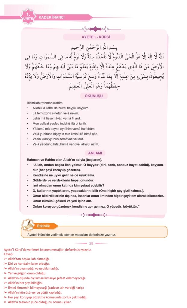 8. Sınıf Din Kültürü ve Ahlak Bilgisi Ders Kitabı Anka Yayınları Sayfa 28 Cevapları