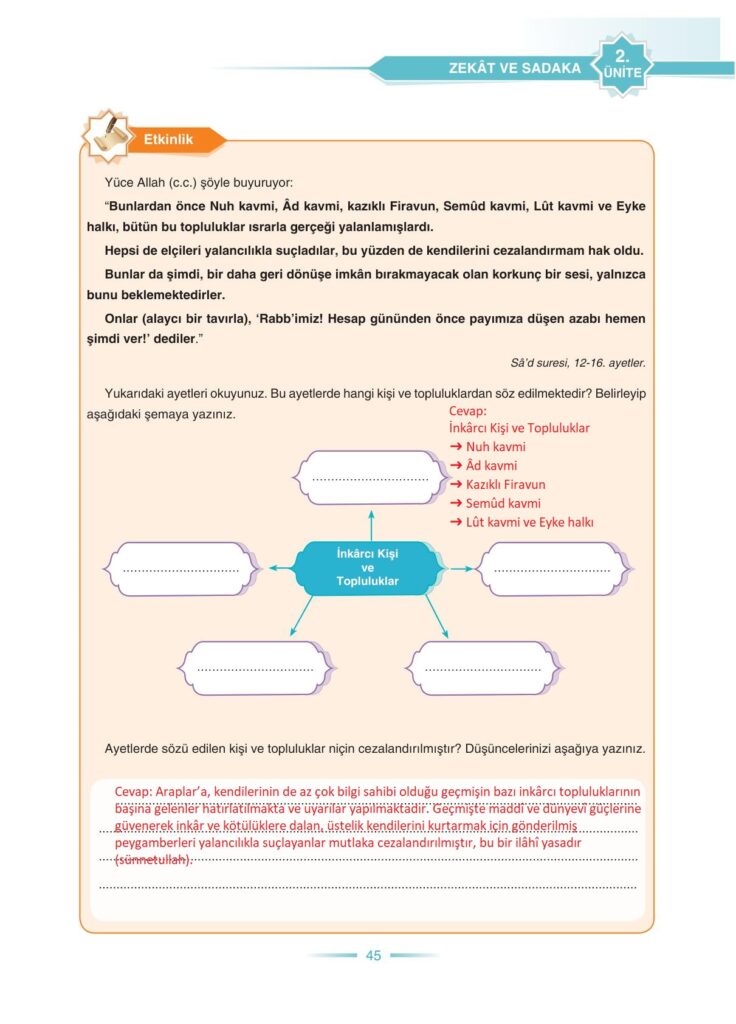 8. Sınıf Din Kültürü ve Ahlak Bilgisi Ders Kitabı Anka Yayınları Sayfa 45 Cevapları