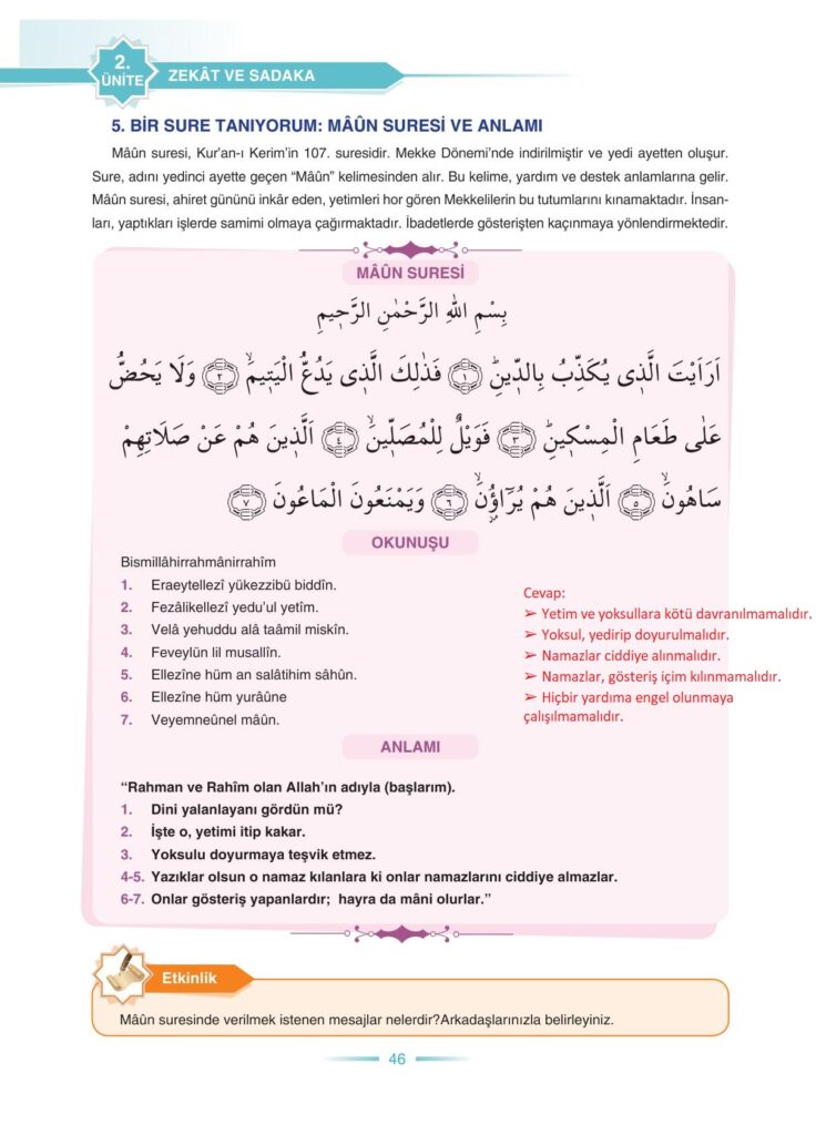 8. Sınıf Din Kültürü ve Ahlak Bilgisi Ders Kitabı Anka Yayınları Sayfa 46 Cevapları