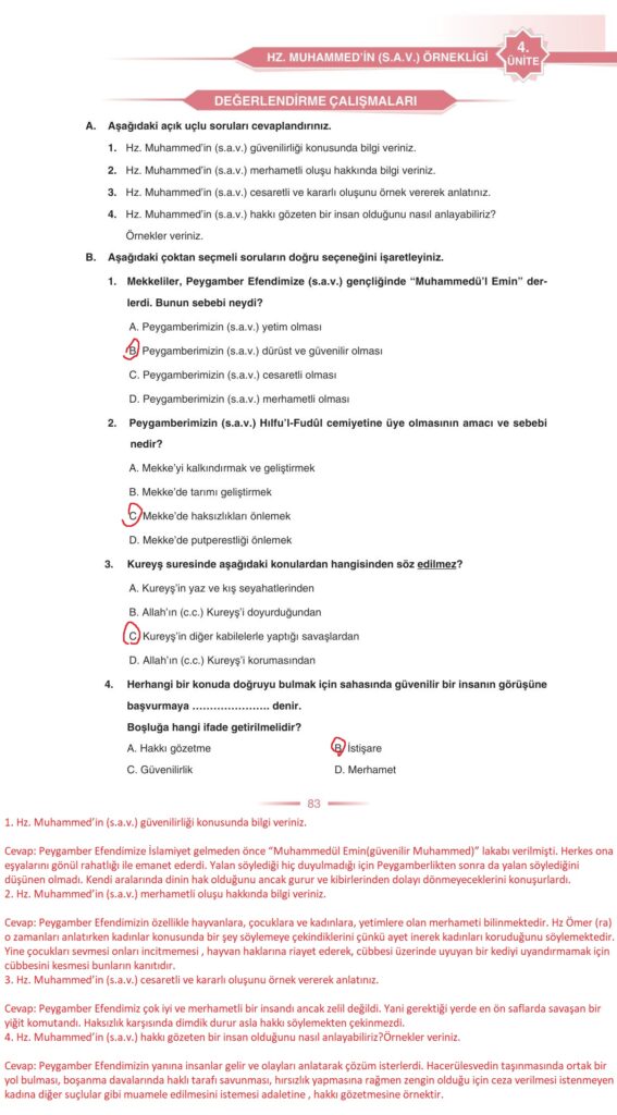 8.sınıf din kültürü ve ahlak bilgisi ders kitabı anka yayınları sayfa 83 cevap anahtarı cevabı sayfa olarak çözümlerini yanıtları sizler için sunduk. Tüm ders kitabı cevapları gelecek yıl yine sitemizde olacak.