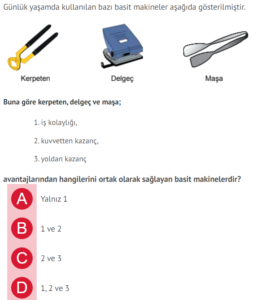8. Sınıf Fen Bilimleri Basit Makineler Testleri Çöz Online