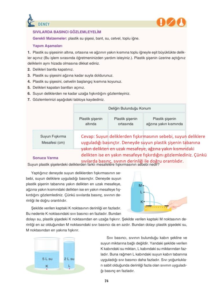 8.Sınıf Fen Bilimleri Matbaa Yayıncılık Sayfa 74 Cevapları / Cevabı