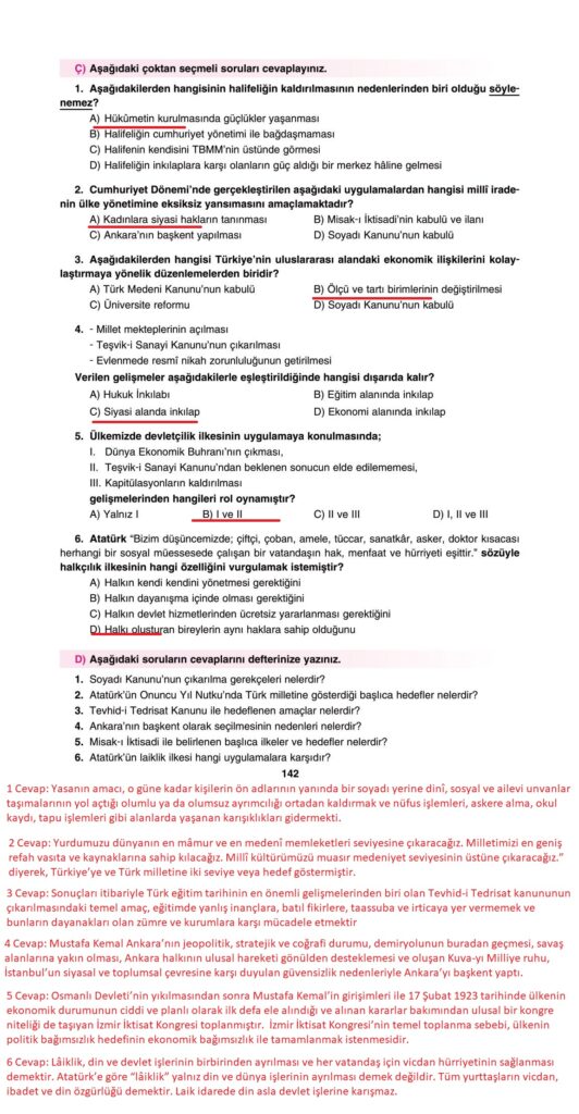 8. sınıf inkılap tarihi ders kitabı cevapları dersdestek yayınları sayfa 142 cevap anahtarı 2022-2023 sayfa olarak çözümlerini yanıtları sizler için aşağıda sunduk. 2025-2026 dersdestek yayınları inkılap tarihi ders kitabı cevapları yine sitemizde olacak.
