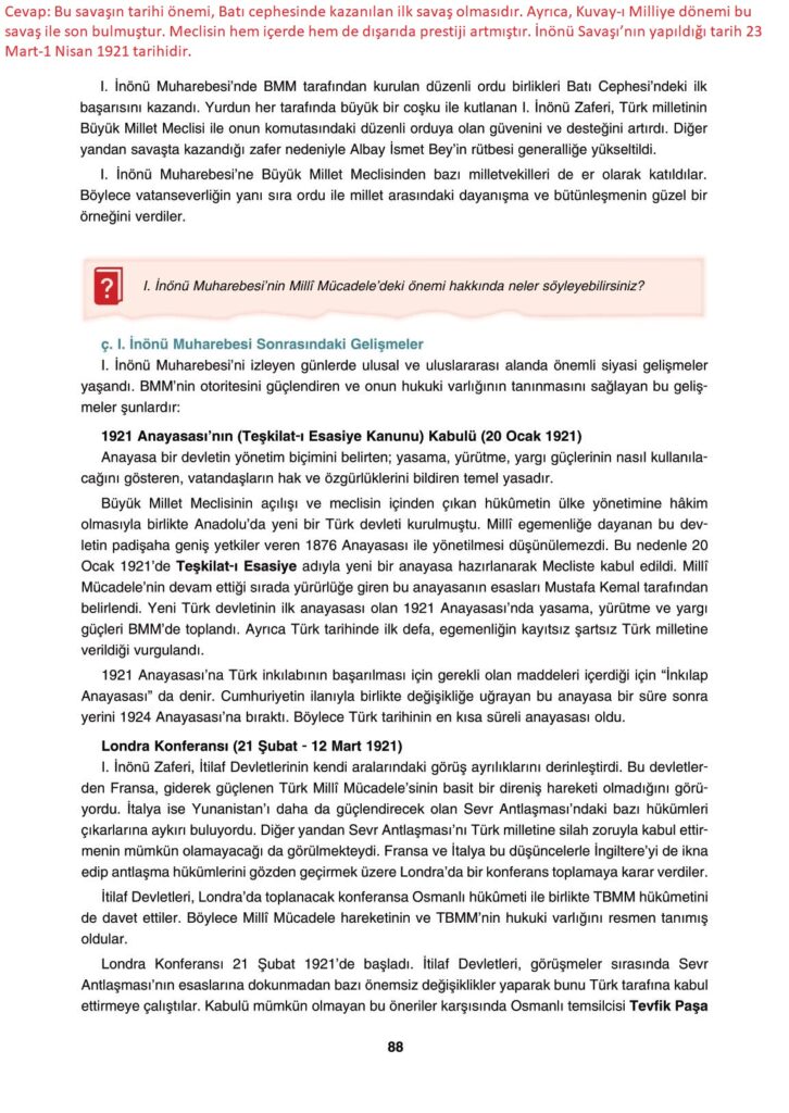 8. sınıf inkılap tarihi kitabı sayfa 88 cevapları dersdestek yayınları en güncel haliyle sitemizde. 8.sınıf inkılap tarihi dersdestek yayınları sayfa 88 cevabı görmek için aşağıdaki görsele bakabilirsiniz.