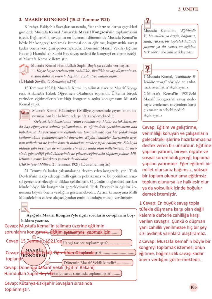 8. sınıf inkılap kitabı sayfa 105 cevapları meb yayınları en güncel haliyle sitemizde. 8.sınıf inkılap tarihi meb yayınları sayfa 105 cevabı görmek için aşağıdaki görsele bakabilirsiniz.