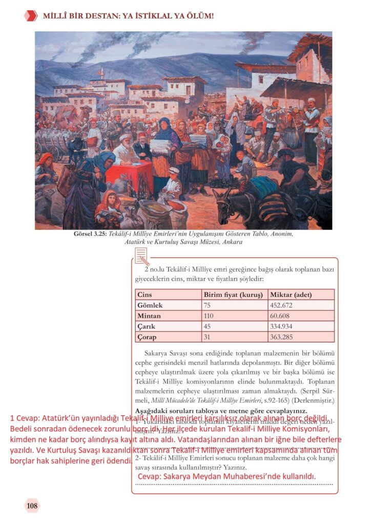 8. Sınıf İnkılap Sayfa 108 Cevapları Meb Yayınları