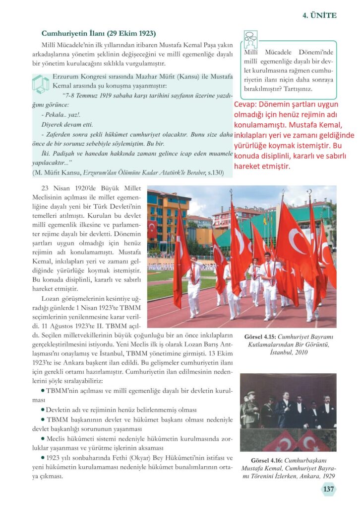 8. sınıf inkılap kitabı sayfa 137 cevapları meb yayınları en güncel haliyle sitemizde. 8.sınıf inkılap tarihi meb yayınları sayfa 137 cevabı görmek için aşağıdaki görsele bakabilirsiniz.