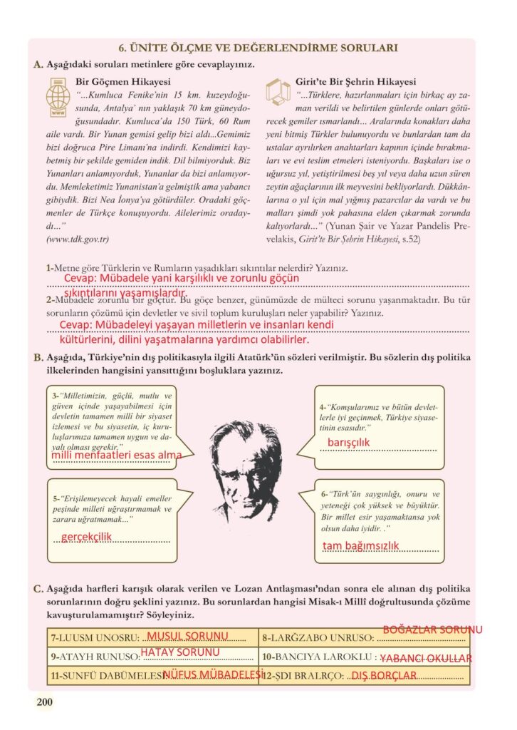 8. Sınıf İnkılap Sayfa 200 Cevapları Meb Yayınları
