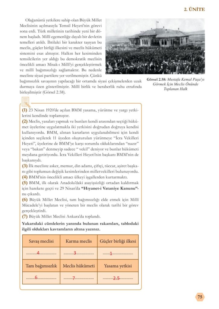 8. Sınıf İnkılap Sayfa 75 Cevapları Meb Yayınları