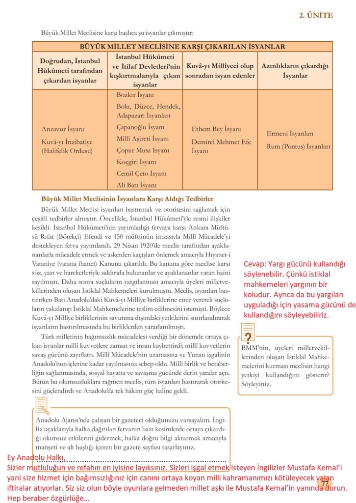 8. Sınıf İnkılap Sayfa 77 Cevapları Meb Yayınları
