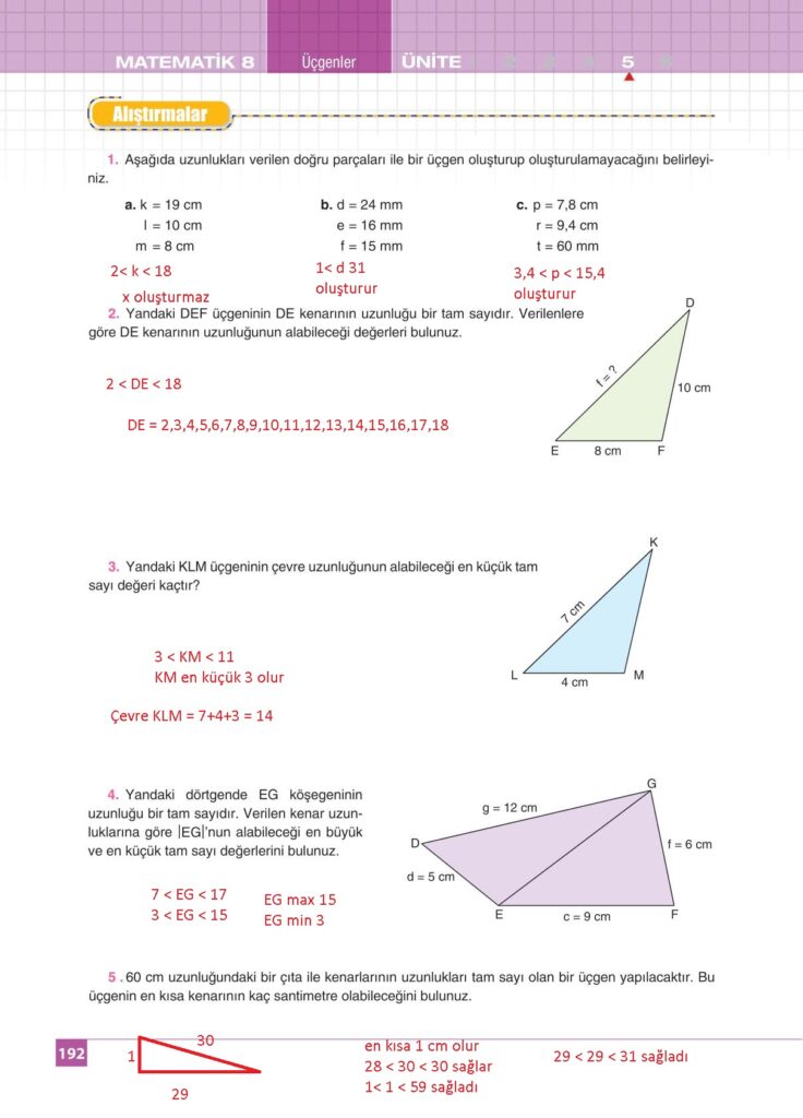 8. Sınıf Matematik Koza Yayınları Sayfa 192 Cevabı