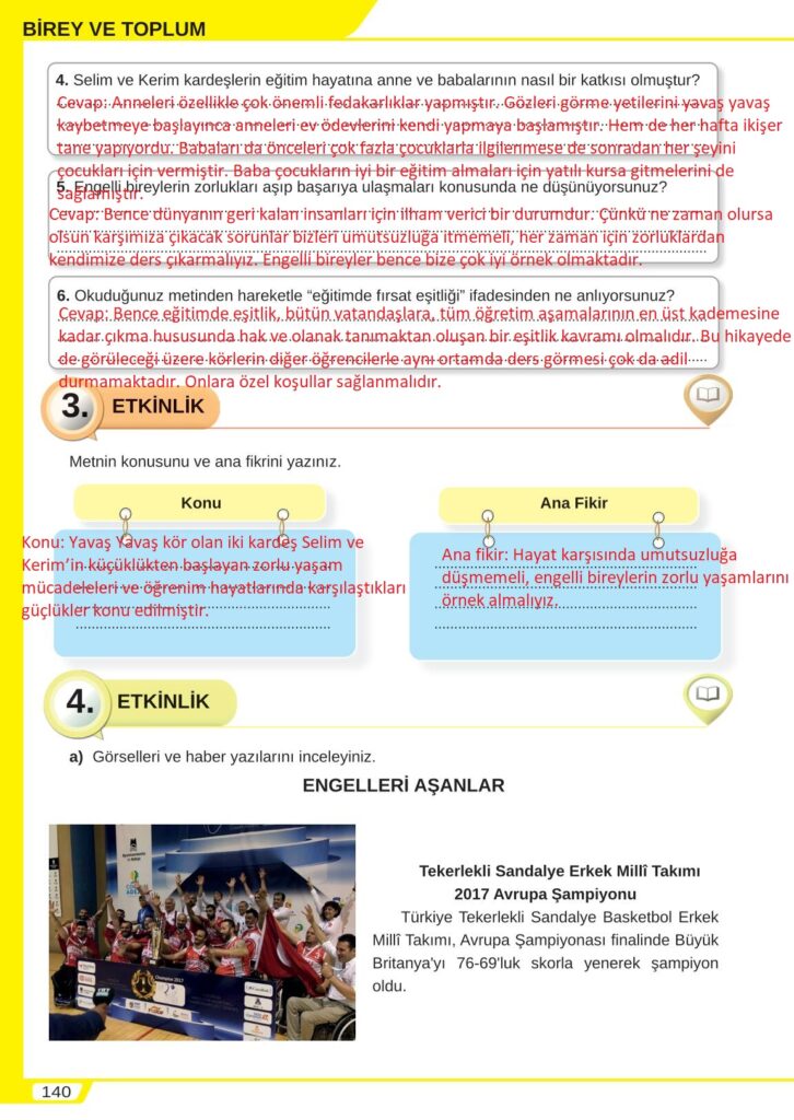 8. Sınıf Türkçe Sayfa 140 Cevapları Meb Yayınları