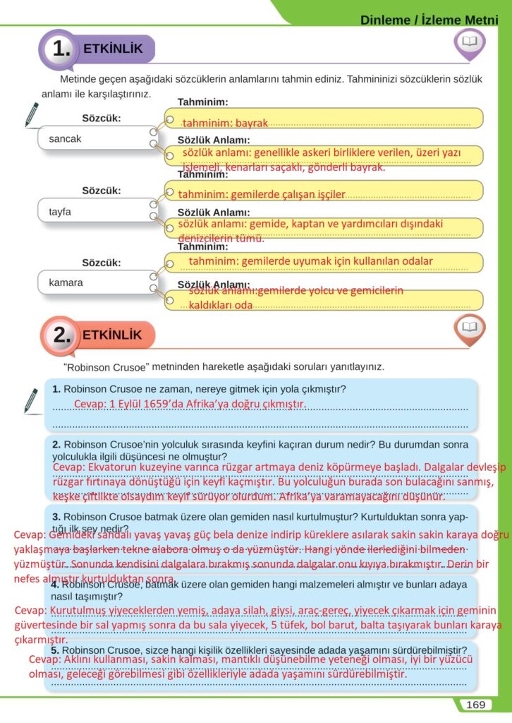 8.sınıf türkçe meb yayınları sayfa 169 cevapları en güncel haliyle sitemizde. 8.sınıf türkçe ders kitabı cevapları sayfa 169 cevabı meb yayıncılık ile ilgili sorularını varsa yorumlar kısmına yazabilirsiniz.