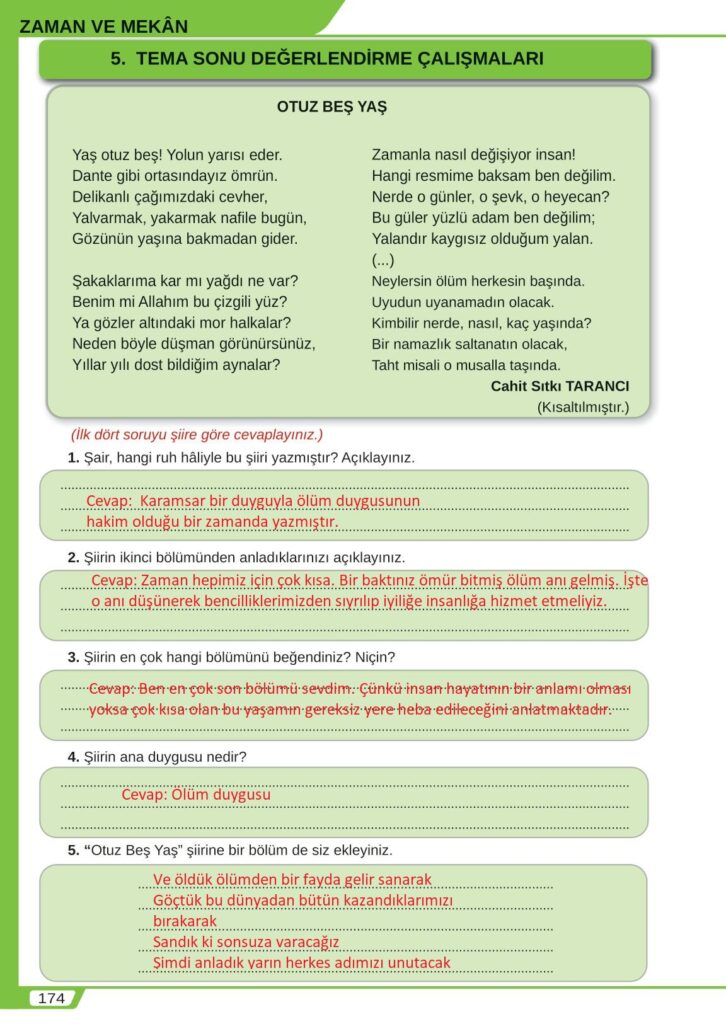 8. Sınıf Türkçe Sayfa 174 Cevapları Meb Yayınları