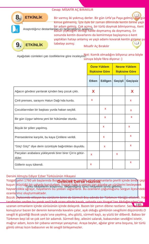 8. Sınıf Türkçe Sayfa 185 Cevapları Meb Yayınları