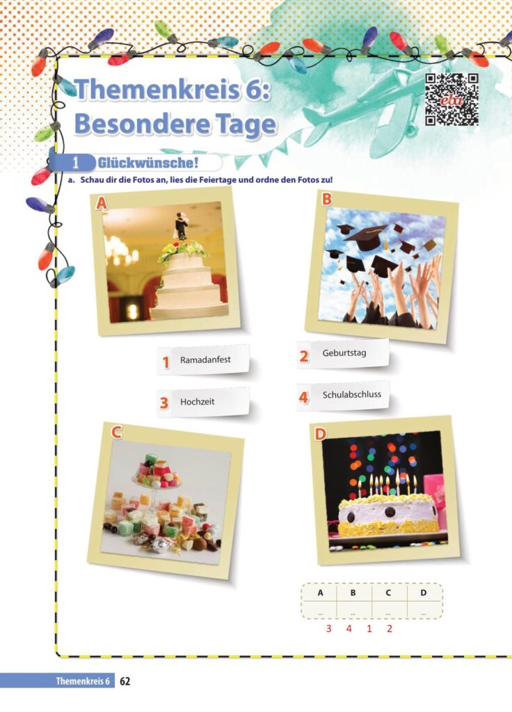 9. sınıf almanca A1.1 ders kitabı cevapları koza yayınları sayfa 62 cevap anahtarı 2022-2023 sayfa olarak çözümlerini yanıtları sizler için aşağıda sunduk. 2025-2026 koza yayınları almanca A1.1 ders kitabı cevapları yine sitemizde olacak.