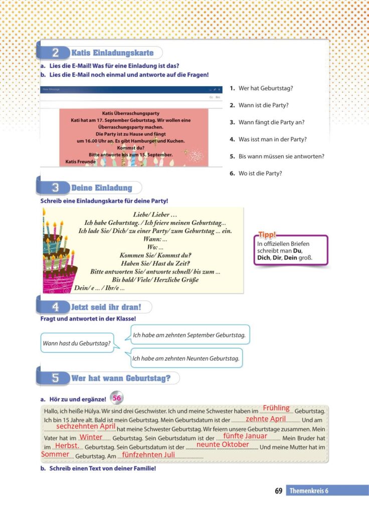 9. Sınıf Almanca A1.1 Koza Yayınları Sayfa 69 Cevapları / Cevabı