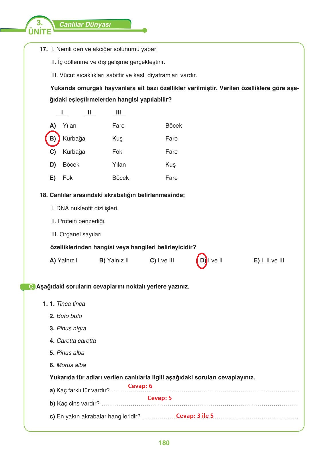 9. Sınıf Biyoloji Ders Kitabı Tutku Yayınları Sayfa 180 Cevapları