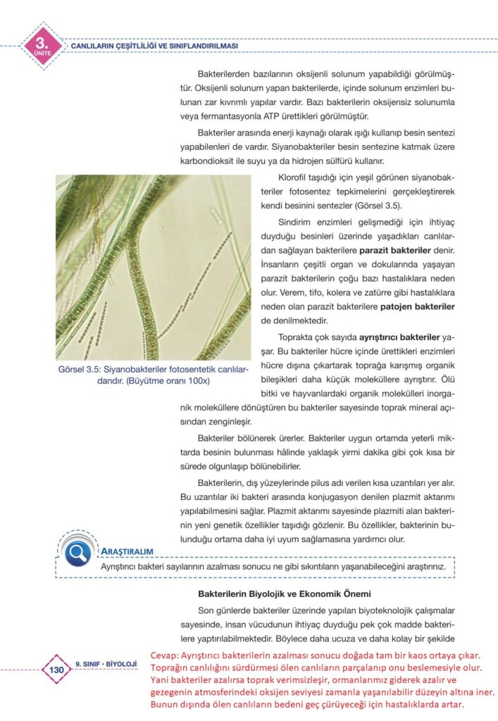 9. Sınıf Biyoloji Ez De Yayıncılık Sayfa130 Cevapları / Cevabı