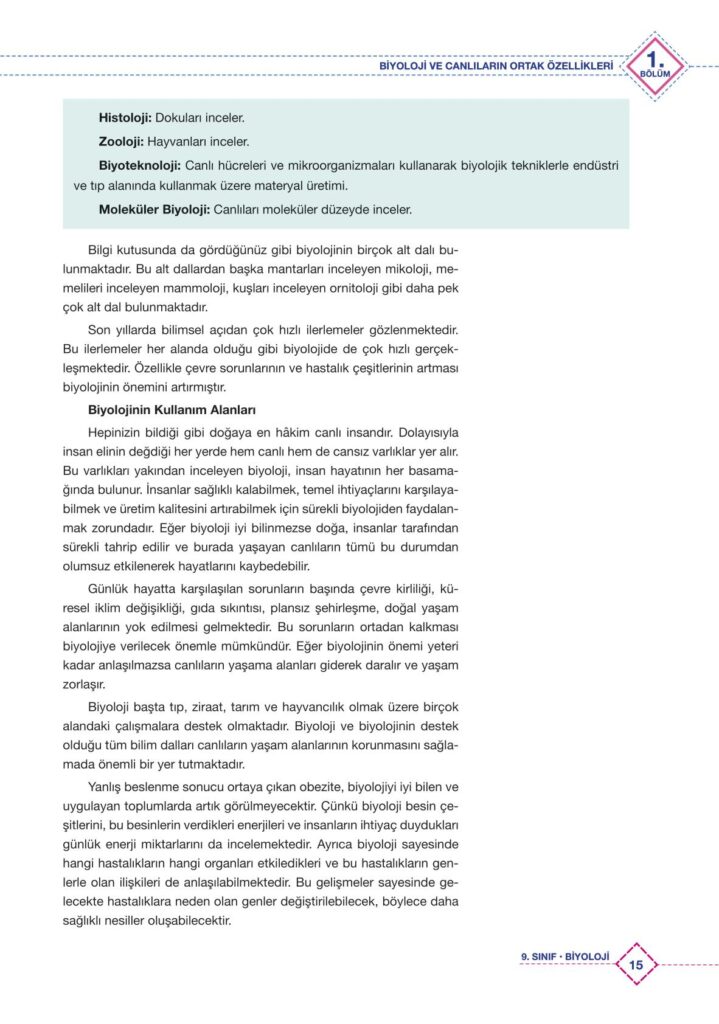 9. Sınıf Biyoloji Ez De Yayıncılık Sayfa 15 Cevapları / Cevabı