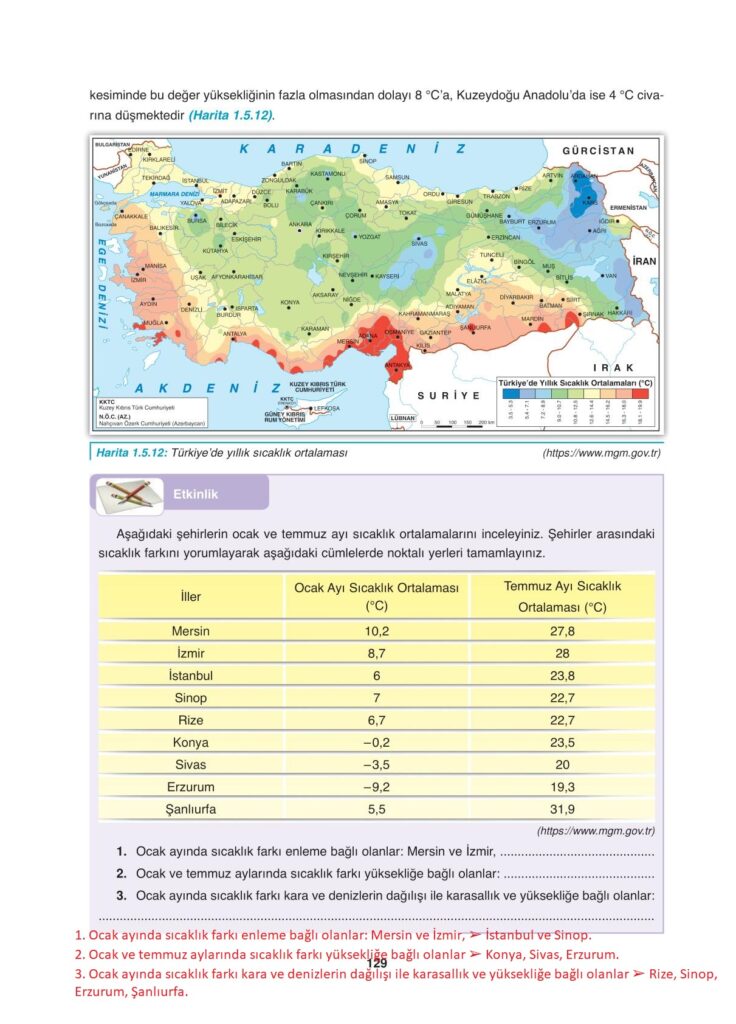 9. Sınıf Coğrafya Gün Yayınları Sayfa 129 Cevabı