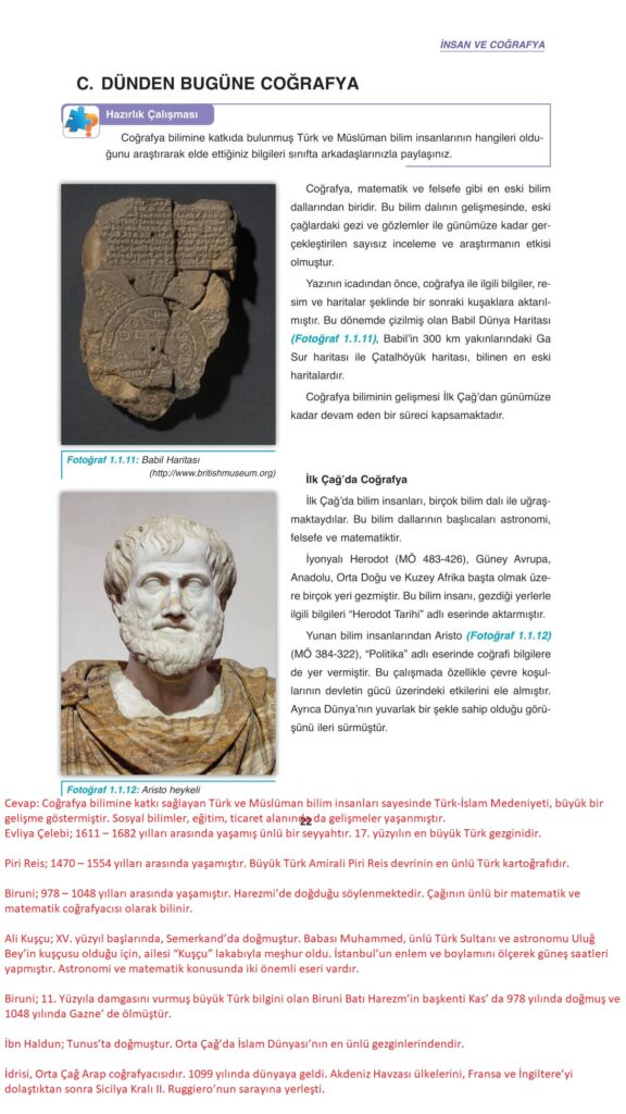 9. SINIF COĞRAFYA GÜN YAYINLARI DERS KİTABI CEVAPLARI