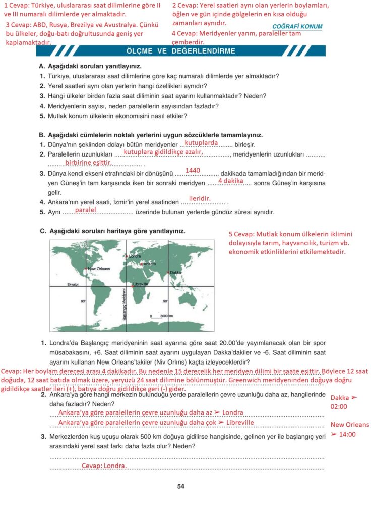 9. Sınıf Coğrafya Gün Yayınları Sayfa 54 Cevabı
