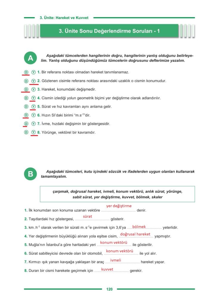 9. Sınıf Fizik Ders Kitabı Hecce Yayıncılık Sayfa 120 Cevapları