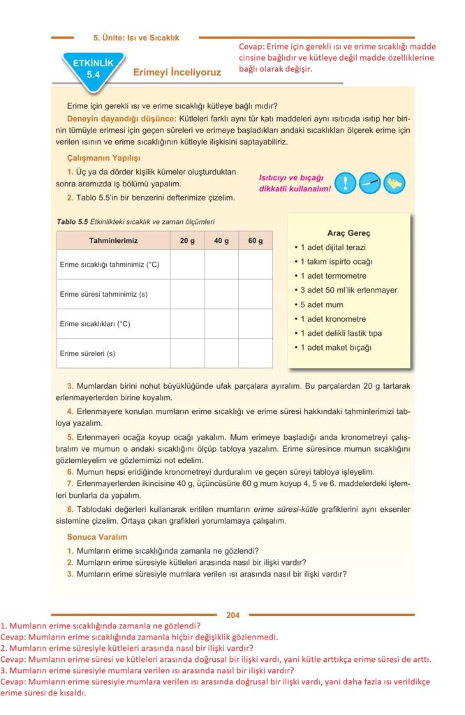 9. Sınıf Fizik Ders Kitabı Hecce Yayıncılık Sayfa 204 Cevapları