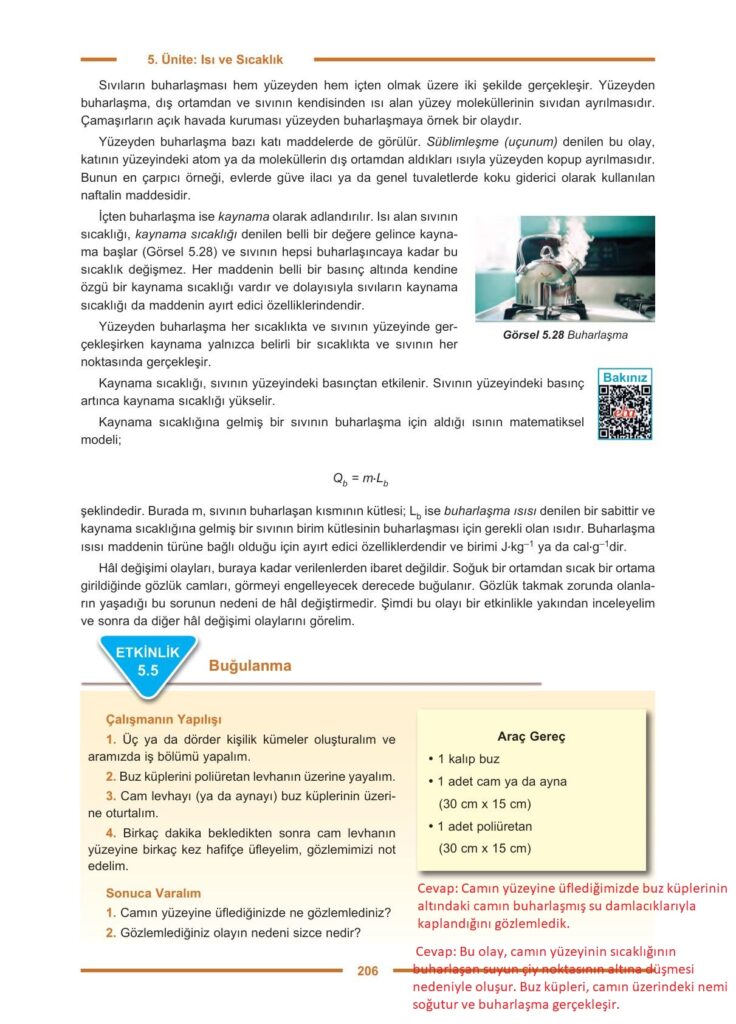 9. Sınıf Fizik Ders Kitabı Hecce Yayıncılık Sayfa 206 Cevapları