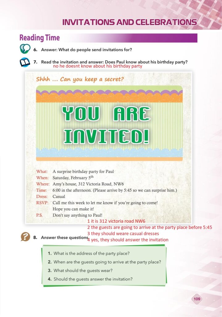 9. Sınıf İngilizce Relearn Pasifik Yayınları Sayfa 109 Cevapları / Cevabı