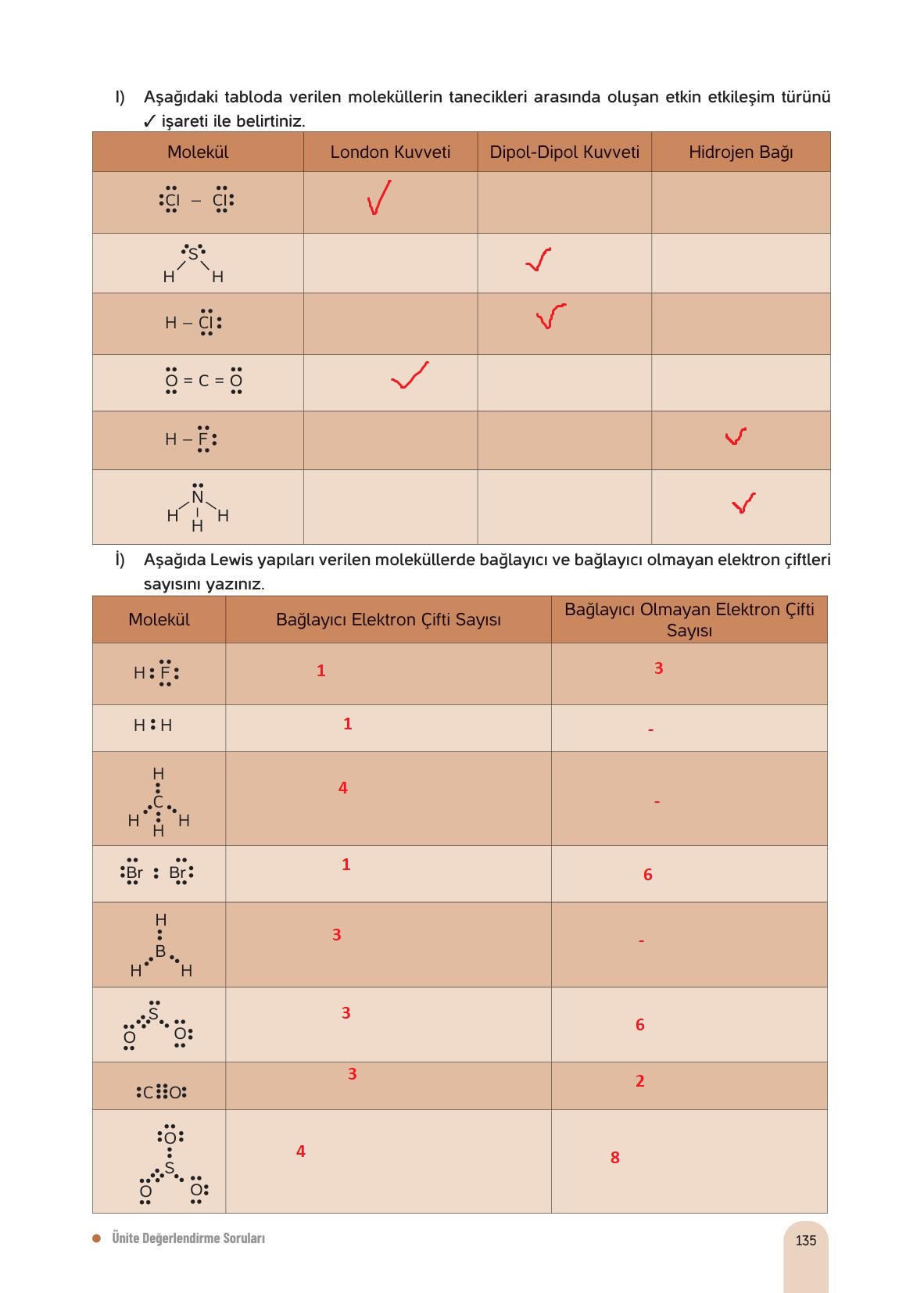 9. Sınıf Kimya Ders Kitabı Hecce Yayınları Sayfa 135 Cevapları